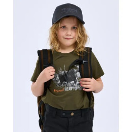 Il dispose de plusieurs compartiments fonctionnels, dont un grand compartiment avec un cordon et un rabat, ainsi qu'un compartiment intérieur et un compartiment latéral avec une fermeture éclair où l'enfant peut ranger des objets importants en toute sécurité. Les bretelles sont ergonomiques avec une boucle sur la poitrine qui aide à répartir le poids du sac à dos lors de longues randonnées.