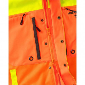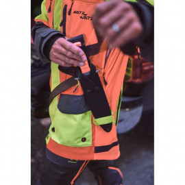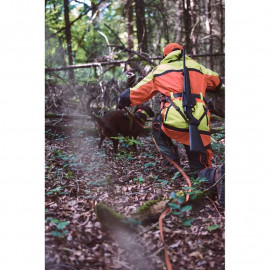 Veste de traque et de conducteur de chien de sang Hatz-Watz Evolution de PARFORCE, a été développée en collaboration avec des chasseurs et des conducteurs de chiens de sang expérimentés, se retrouve au niveau des performances qui sont sans précédent en termes de protection et de fonctionnalité. Grâce aux empiècements orange et jaune offre une grande visibilité même dans la végétation denses. Des éléments réfléchissants supplémentaires augmentent la visibilité. Tissu en polyester 800D extrêmement robuste sur le devant, les épaules, la capuche et la poche carnier est ultra-résistant dans les épines, l’humidité et à l'abrasion.